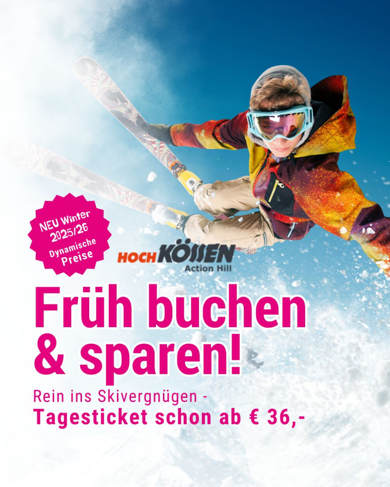- 10% Ermäßigung auf Berg- und Talfahrt Bergbahn Hochkössen Erw. Lift, Kinder gratis (ab Jg. 2008) in Begleitung